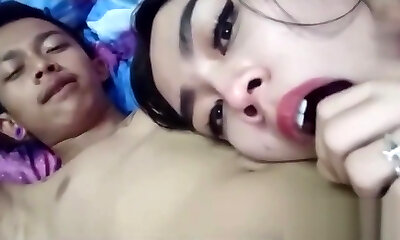 Brunette ladyboy with small tits gives her beau a