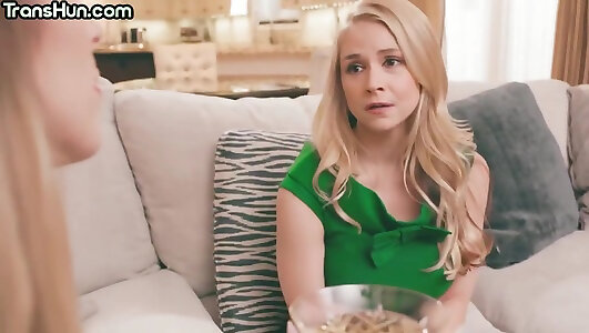 漂亮的金发女郎tgirl与一个超可爱的一对身材矮小的连帽衫得到性交