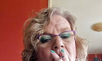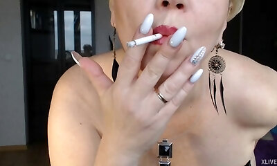 Ciggie吸烟和骨fapping独奏亚洲人妖